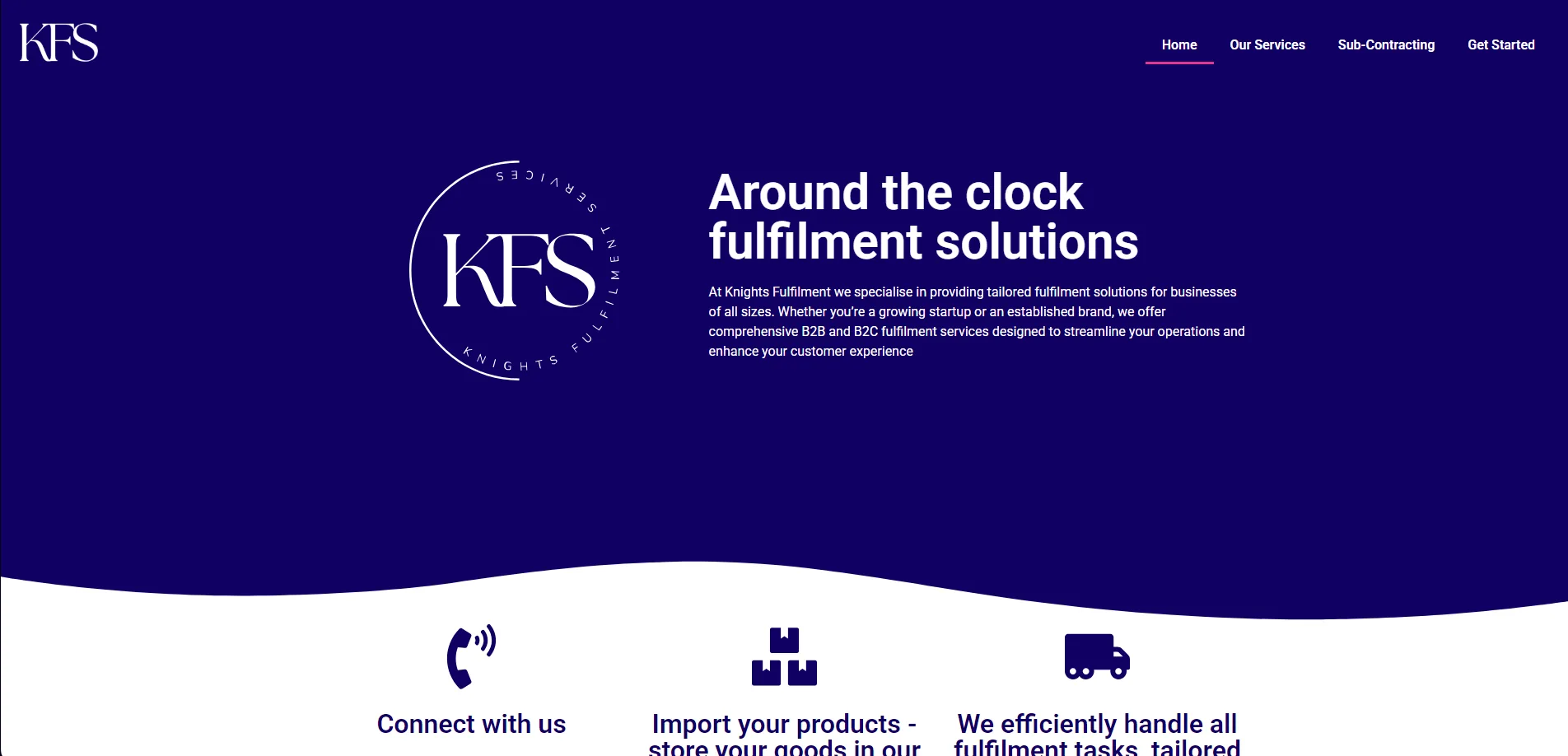 The website needed to clearly communicate Knights Fulfilment’s capability to handle operations of any scale, from emerging e-commerce startups to established retail brands. We developed a clean, professional interface that guides potential clients through their service offerings whilst emphasising their commitment to operational excellence.